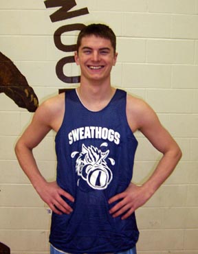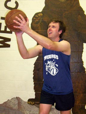 Is that the guy from student bodies? No, not the cool one, the dorky one! A commonly overheard phrase at a Sweathog game might be, "Wow, look at that guy hussle!" They are undoubtedly talking about Cade "Air"ason. He hates to lose and will put it all on the line to help the Hogs to victory. An unselfish player, Cade-O likes to distribute the ball to the posts either directly (via pass) or indirectly (via brick). He likes to get his 3 point attempts in, and avoids entering the key where all the big sweaty guys play, unless trying to leap over them to snag a rebound. The official accountant of the Sweathogs, he always knows the score (because he is on the bench watching the scoreboard hoping for someone to cramp up and come out of the game). But "enough already" about Cade.