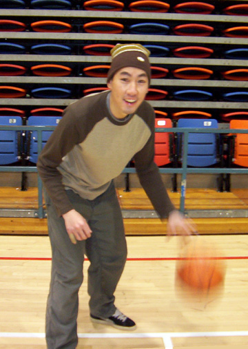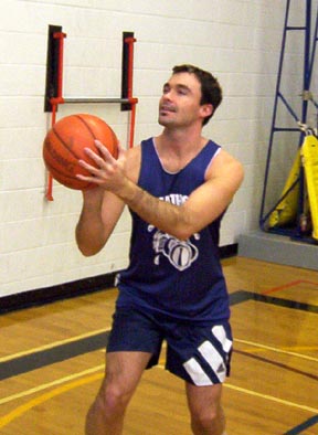 Jerm is the "Worm" because he can twist, slide and slice through the opponents' defence. This big jumper has been working on his post game this year, and it seems to be coming together. Hopefully opposing teams won't realize that he only has one move, and can only go to his right. Jeremy has been an ace in the hole for the Hogs, when he actually makes it to the games. He contributes in many ways, primarily defence and rebounding. The "Worm" can be the go-to guy in those tough games. Just don't let him dribble. Also known as "the Juice" and "the Great Pumpkin" due to his trademark blinding orange sweatpants. The Juice is back in action after a one year hiatus in the Australian outback, wrestling koala bears and maiming walabees with his bare hands. He should be meaner than ever in his return to our frozen hostile climate.