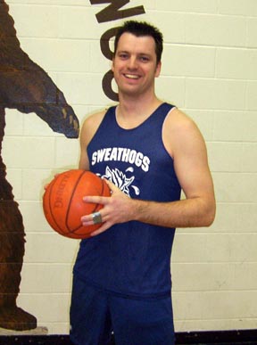 Bill's similarities to the man of steel go beyond his uncanny resemblance to Clark Kent. He also wears blue long-johns and red short-shorts. Bill has stepped up his play several times for the Hogs this year. His constant hussle and sick drives to the hole will have you jumping out of your seat to say "Thank you, Superman!" He also is known for setting up his teammates with bullet-like passes. Bill leads the team in one unfortunate category. Technical fouls. Remember "Superman 3" when Superman turns evil and uses his super-powers against law-abiding citizens? It's kinda like that. Sweathogs sometimes like to challenge Bill with an old high school game of "catch this Bill" when sending terrible passes his way.